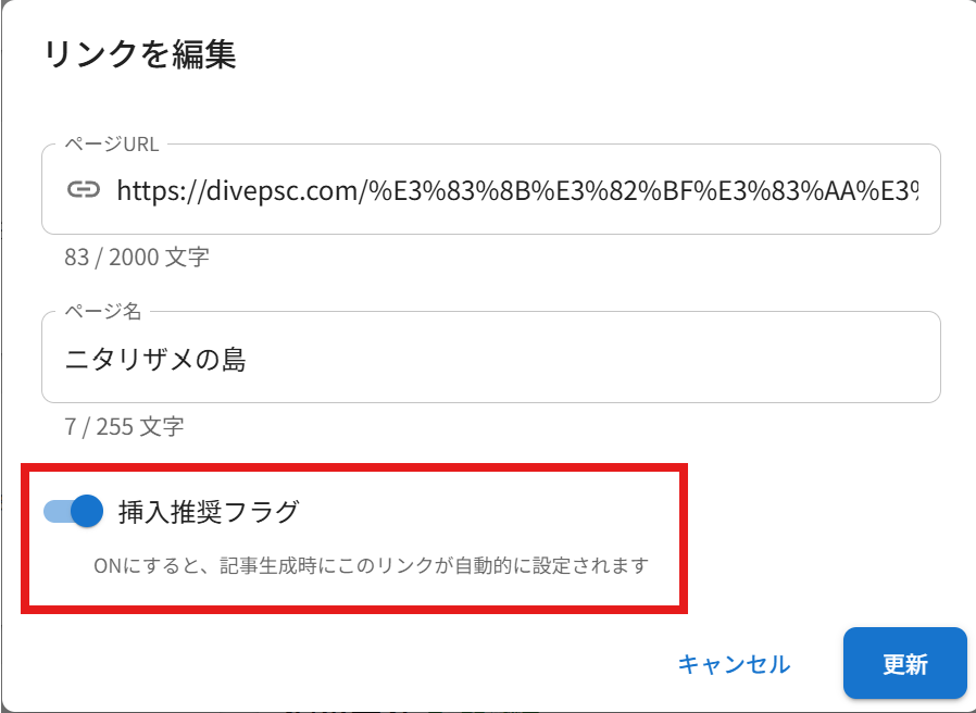 もちろん、記事ごとに挿入リンクを変更・解除することも可能です。
