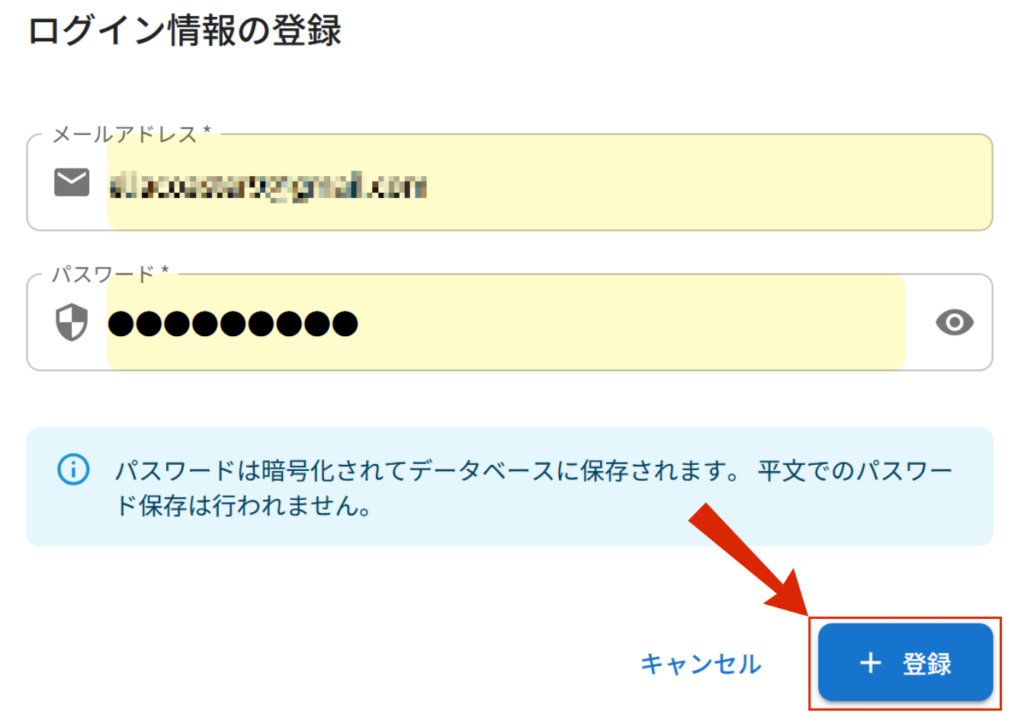 を正確に入力し、「登録」ボタンをクリックしてください。