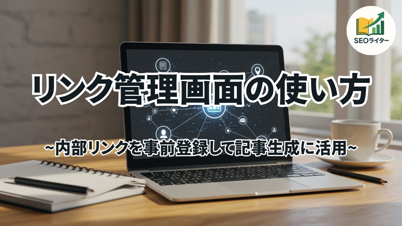 この記事では、記事生成時に利用するリンクをあらかじめ登録しておける 「リンク管理」画面の使い方 をご紹介します。