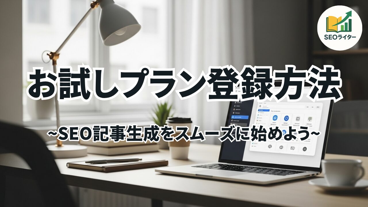 SEO記事を効率よく作成するためのツールを使ってみたいけれど、最初の登録方法に不安を感じている方も多いのではないでしょうか。ここでは、お試しプランをスムーズに始めるための手順を分かりやすく解説します。登録から利用開始までの流れを知っておけば、安心してスタートできます。
