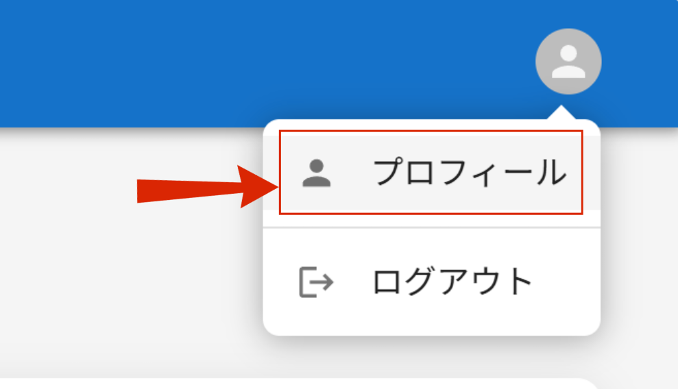 ① 画面右上のアイコンから「プロフィール」を選択