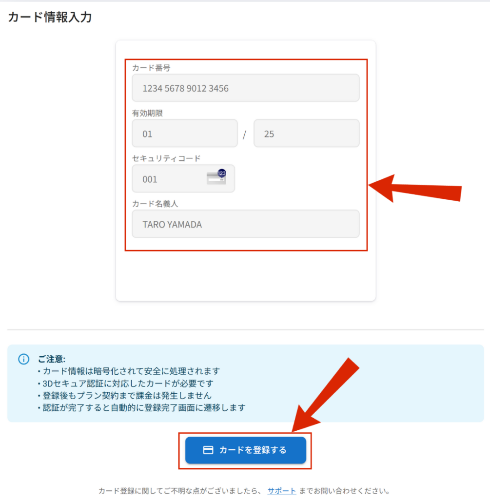 カード情報の登録(お試しプランでも必須)