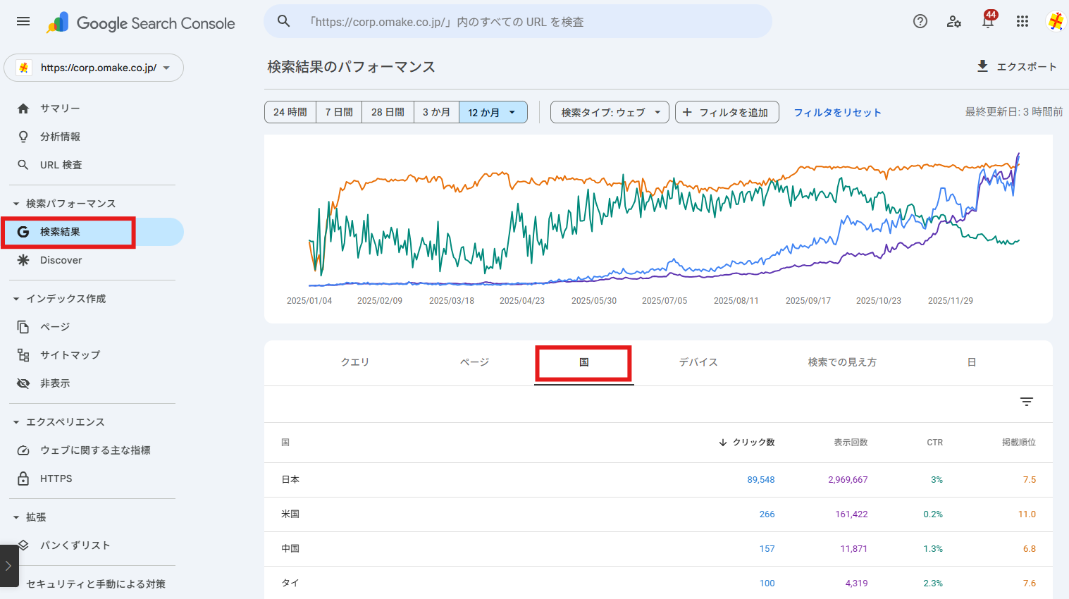 「SEOライター」のダッシュボードは日々の概況把握に便利ですが、データが数万件を超えるような大規模な分析には、Googleが提供する本家Google Search Consoleが最も高速で詳細です。(※SEOライター上でも表示できるよう対策検討中です。)