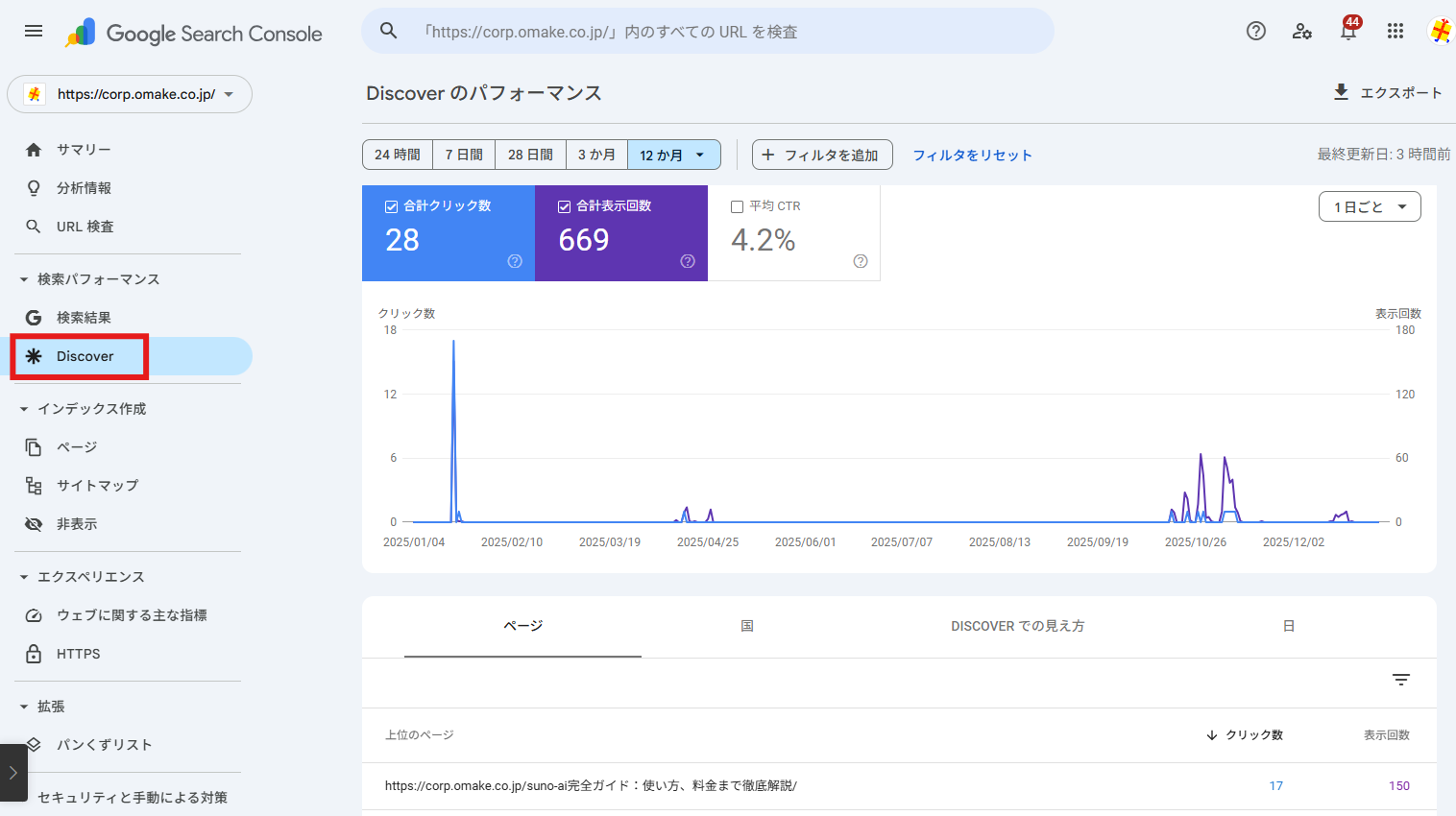 メニューに「Discover」が表示されている場合、Googleのおすすめ記事として「バズ」が発生している可能性があります。