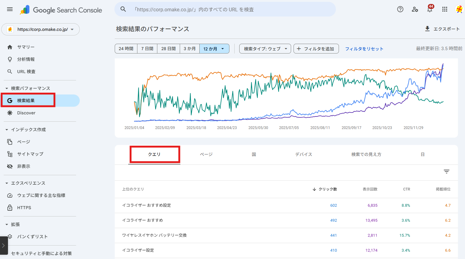 「上位のクエリ」を確認: 添付画像のように、特定のキーワード(例:「イコライザー おすすめ」)でどれだけ表示され、何回クリックされたかをチェックします。
