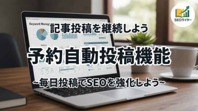 「SEOライター」は、キーワード生成からSEO最適化記事の一括自動生成、画像作成、投稿まで完全自動化する革命的ツール。スマホ対応で、いつでもどこでもコンテンツ制作が可能。作業時間を劇的短縮し、検索順位向上を実現します。