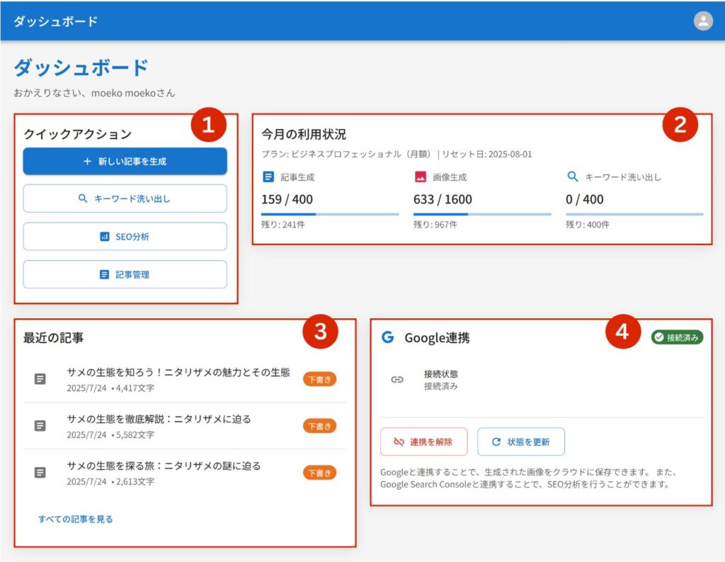 SEOライターの最大の特徴は、使いやすさを追求したダッシュボードです。